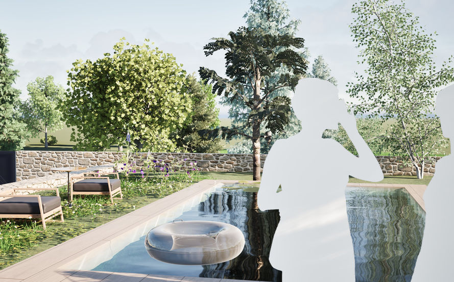 L'Etxea Bizitza Oneko cherche à offrir une maison chaleureuse, confortable et ancrée dans le terroir, tout en répondant aux attentes contemporaines d’élégance et de fonctionnalité. Le contraste entre les matériaux et les formes modernes crée un équilibre permettant de répondre à ces deux exigences. La composition volumétrique favorise la sobriété, évitant toute surcharge décorative, et utilise la végétation pour parfaire le dessin des façades. Les codes de l'architecture locale sont valorisés, offrant un bâtiment qui mêle les influences basques et hispaniques. De grands pins dominent la scène, conservés afin de mettre en valeur leurs silhouettes élancées, qui donnent une impression de majesté. Une prairie fleurie s’étend autour de la maison, composée de plantes rampantes aux teintes blanches et violettes, apportant une subtile nuance en harmonie avec la maison. La végétation grimpante redonne un sens aux colombages modernisés, apportant une touche romantique et un lien naturel entre l’architecture et son environnement. Une piscine intégrée, ornée de quelques plantes aquatiques, parfait l'idée d'un projet à la fois poétique et naturel, suggérant une double fonction esthétique et écologique. Le projet, compact, est conçu pour loger une famille intergénérationnelle accueillant jusqu’à 10 membres. Un grand open space offre une vue panoramique sur les espaces boisés et le jardin, abritant une cuisine, une salle à manger, un salon TV, une bibliothèque et une table prévue pour 12 convives. Des suites intimes permettent à chaque couple de bénéficier d’espaces généreux comprenant une chambre, un dressing, une salle d'eau et des toilettes. La maison défie la complexité du terrain dans son implantation, en cherchant à être la plus pragmatique possible.