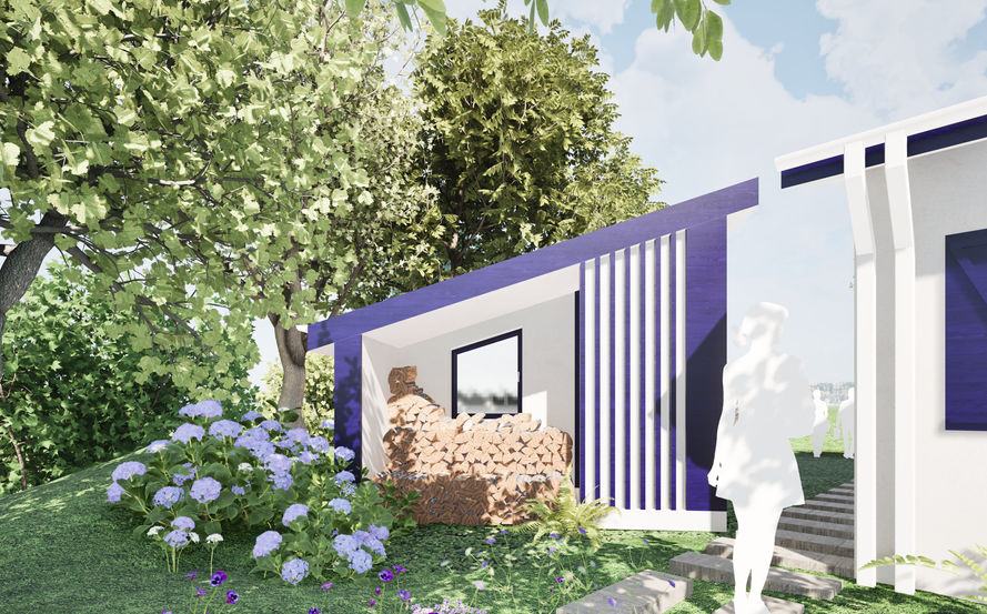 Pour une autonomie partielle en eau, le projet est équipé de bassins de rétention et d'une piscine naturelle autonome pour la récupération des eaux pluviales. Face aux épisodes de canicules de plus en plus fréquents, la récupération des eaux de pluie devient indispensable. Le bassin naturel et les systèmes nourriciers du potager et du verger sont conçus pour fonctionner en harmonie afin de maximiser le rendement alimentaire du foyer. Implanté en zone naturelle dans un territoire rural, le projet intègre les langages architecturaux locaux, tout en apportant une touche moderne à l'atelier professionnel. Il aspire à combiner éthique immobilière, esthétique, confort et économie, tout en respectant une démarche de rénovation. L'éthique globale du projet est de redonner à ce terrain de zone préservée une pleine valeur, après avoir été construit sans respect des normes réglementaires ni traditionnelles par le passé. Le paysage est dessiné avec une végétation locale et autonome, agrémenté de grandes floraisons violettes et bleues pour sublimer le projet et harmoniser avec son architecture micro-locale.